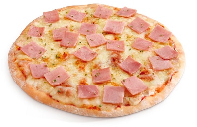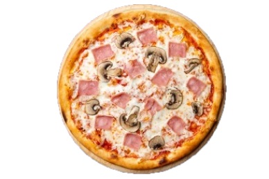 Pizza con jamon, champiñones y queso , tamaño a elegir