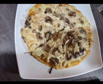 Pizza con champiñones , pollo y queso , tamaño a elegir
