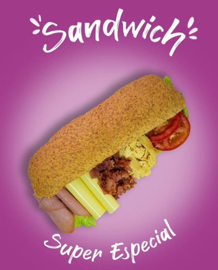 Súper Especial*1 (Jamón de pierna, pollo, tocineta, queso, lechuga y tomate) + Jugos del día*1