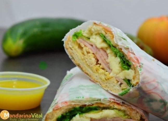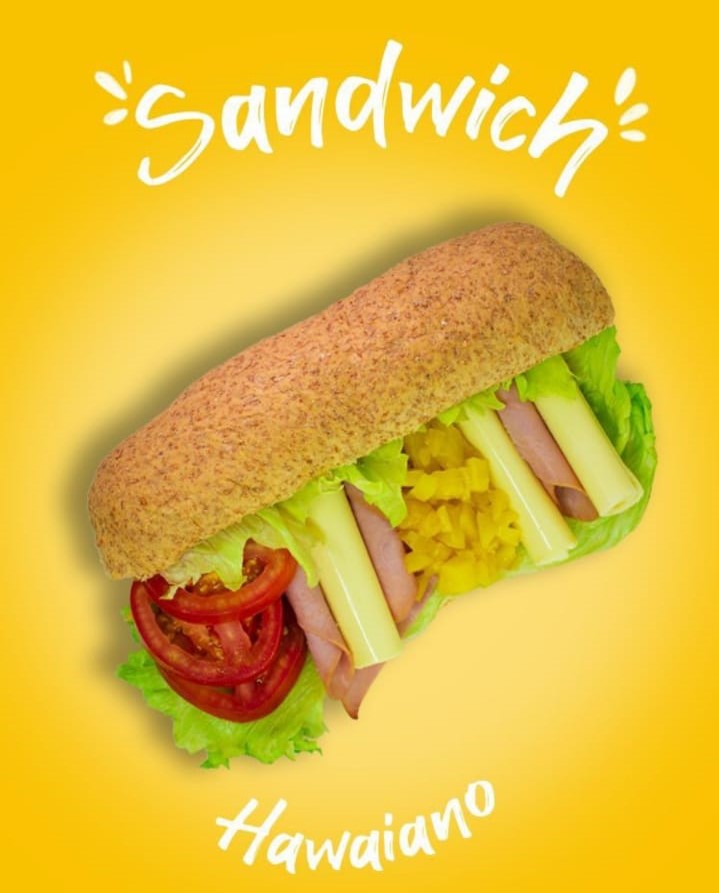 Sándwich 21 cm con jamón de pierna, pollo, tocineta, queso, lechuga y tomate