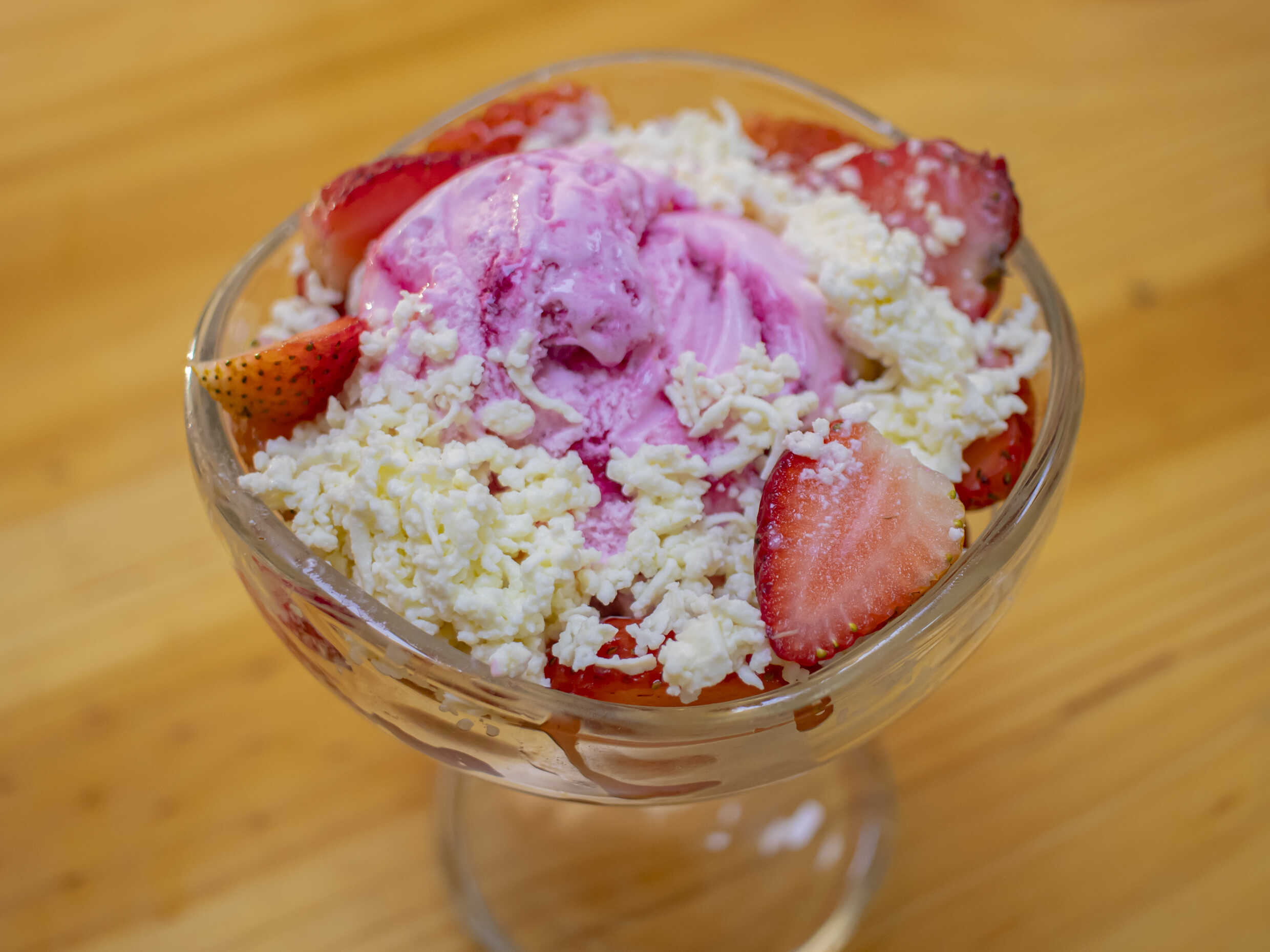 fresas con crema, helado y queso