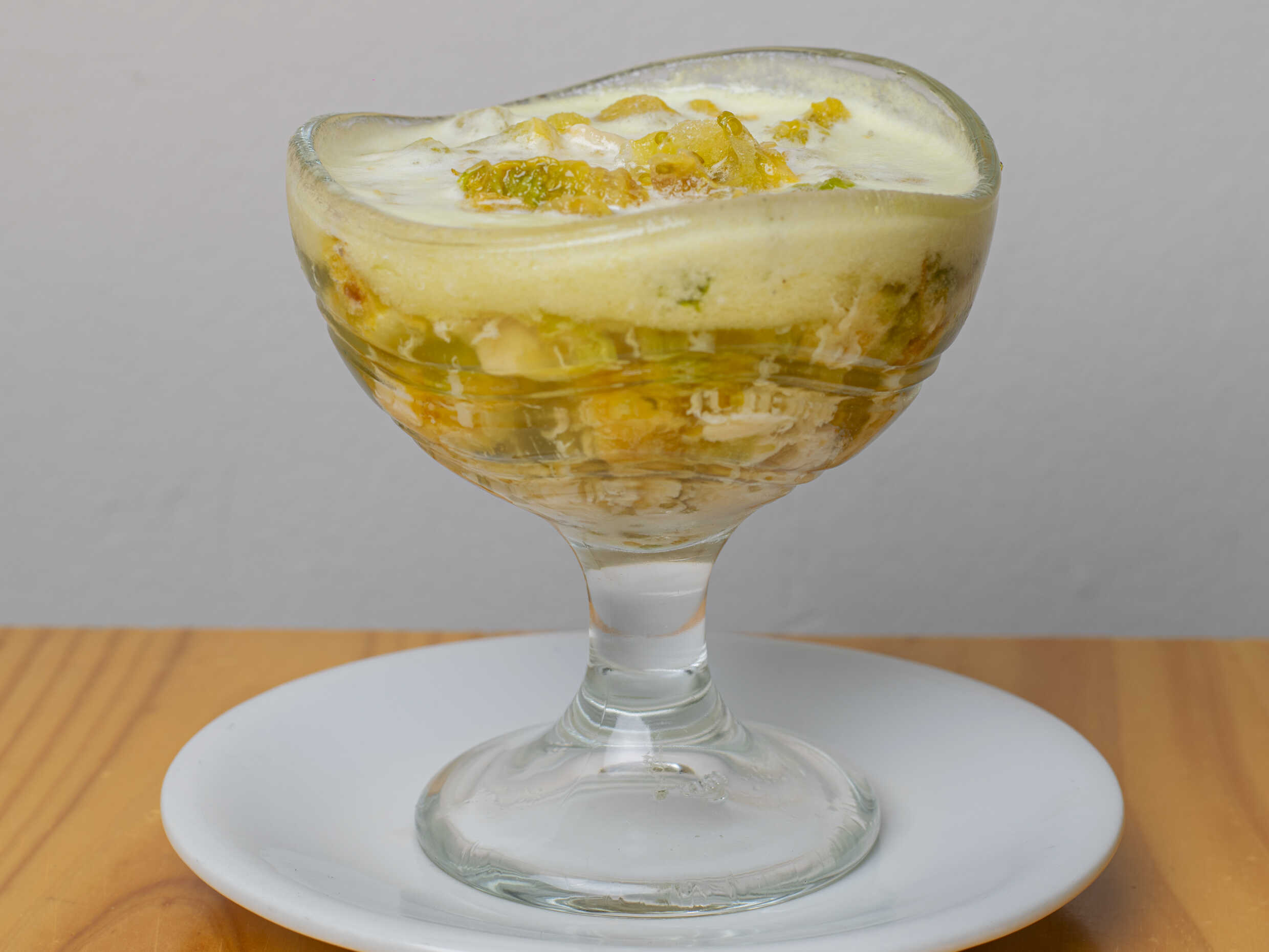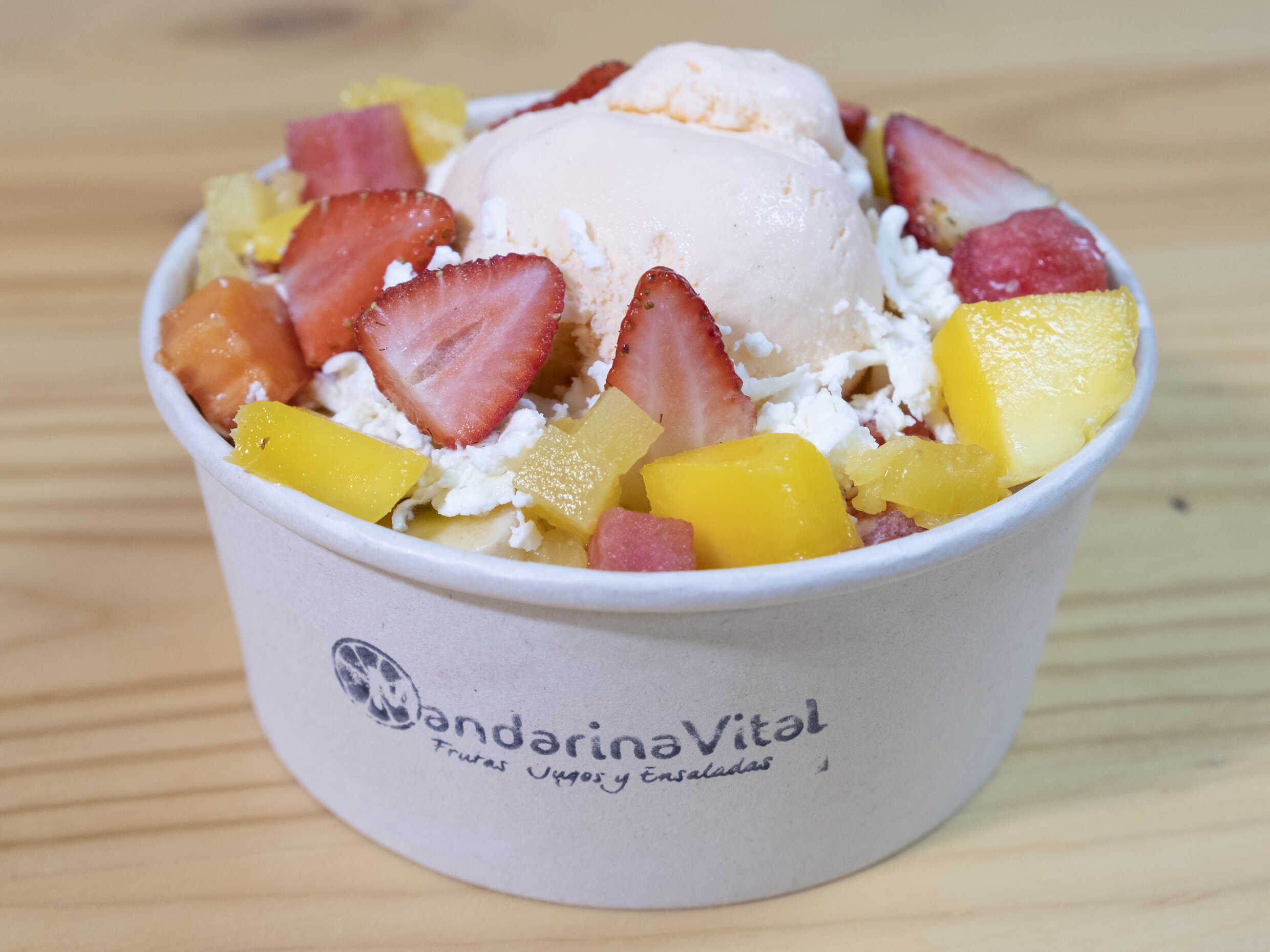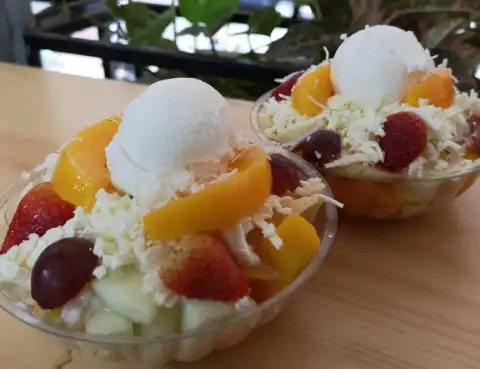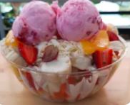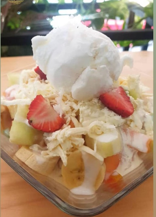 Siete frutas diferentes, queso rallado, crema de leche, yogurt y dos bolas de helado de tú elección. Ideal para 1 a 2 personas.
