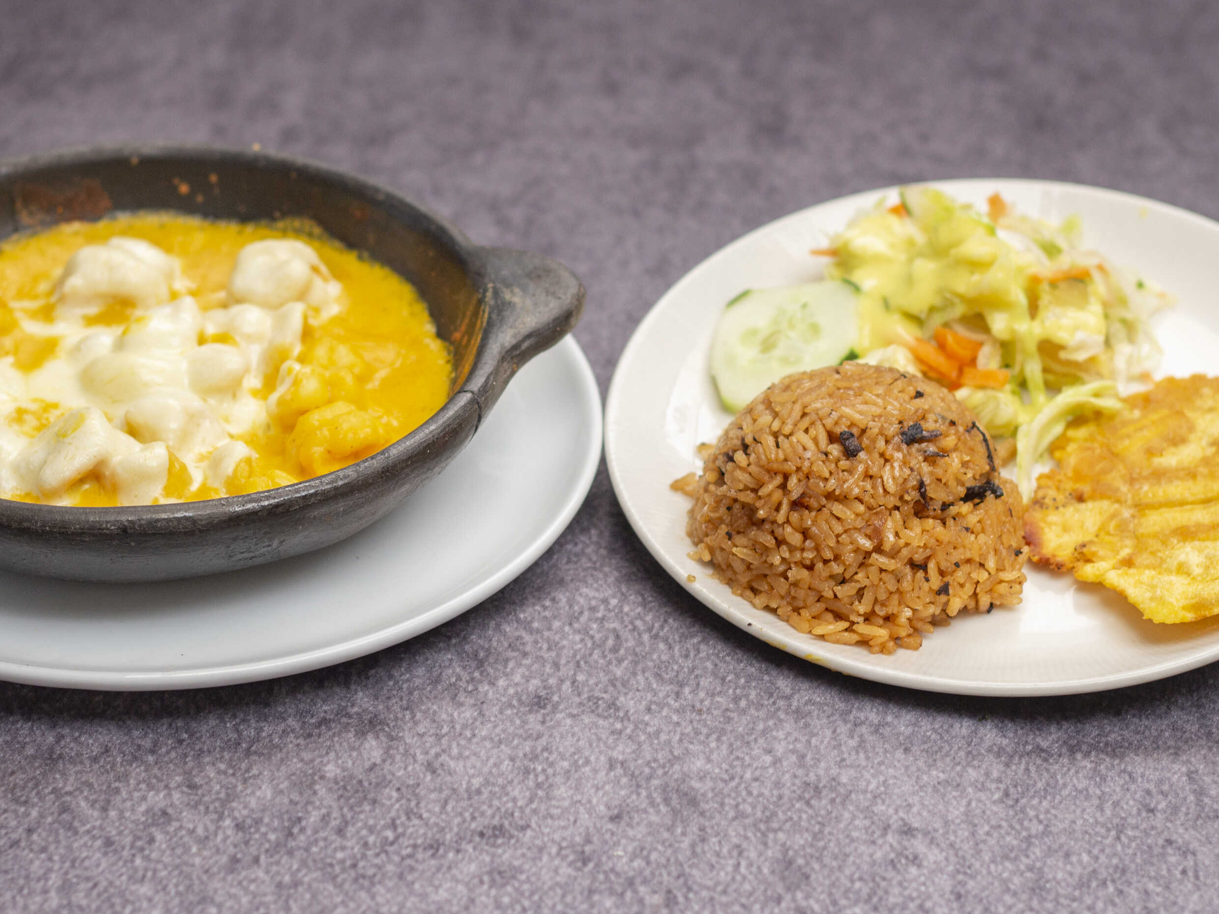 Cazuela de Camarón*2 (Cazuela de camarones, acompañada de arroz coco, ensalada y tostada.)
