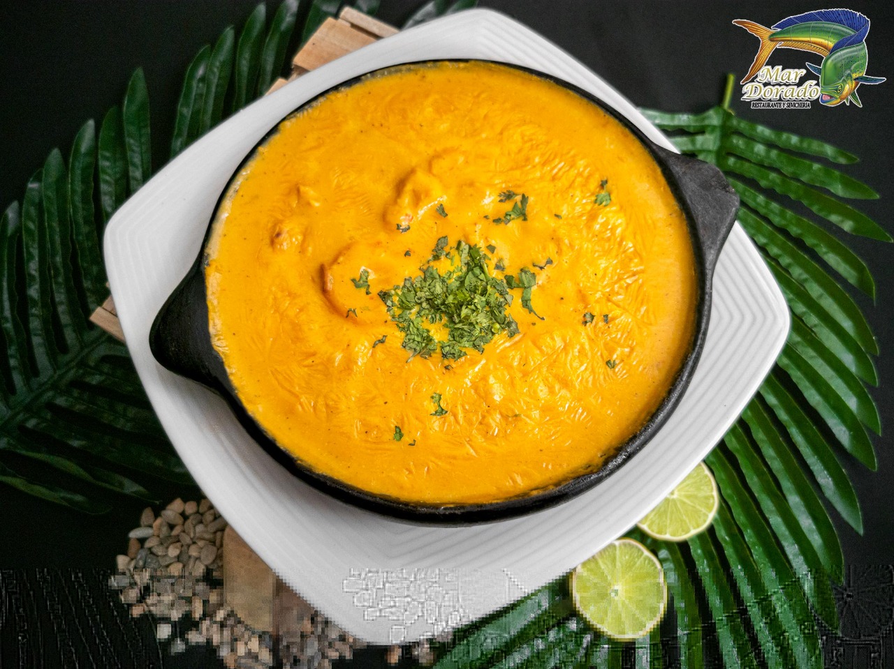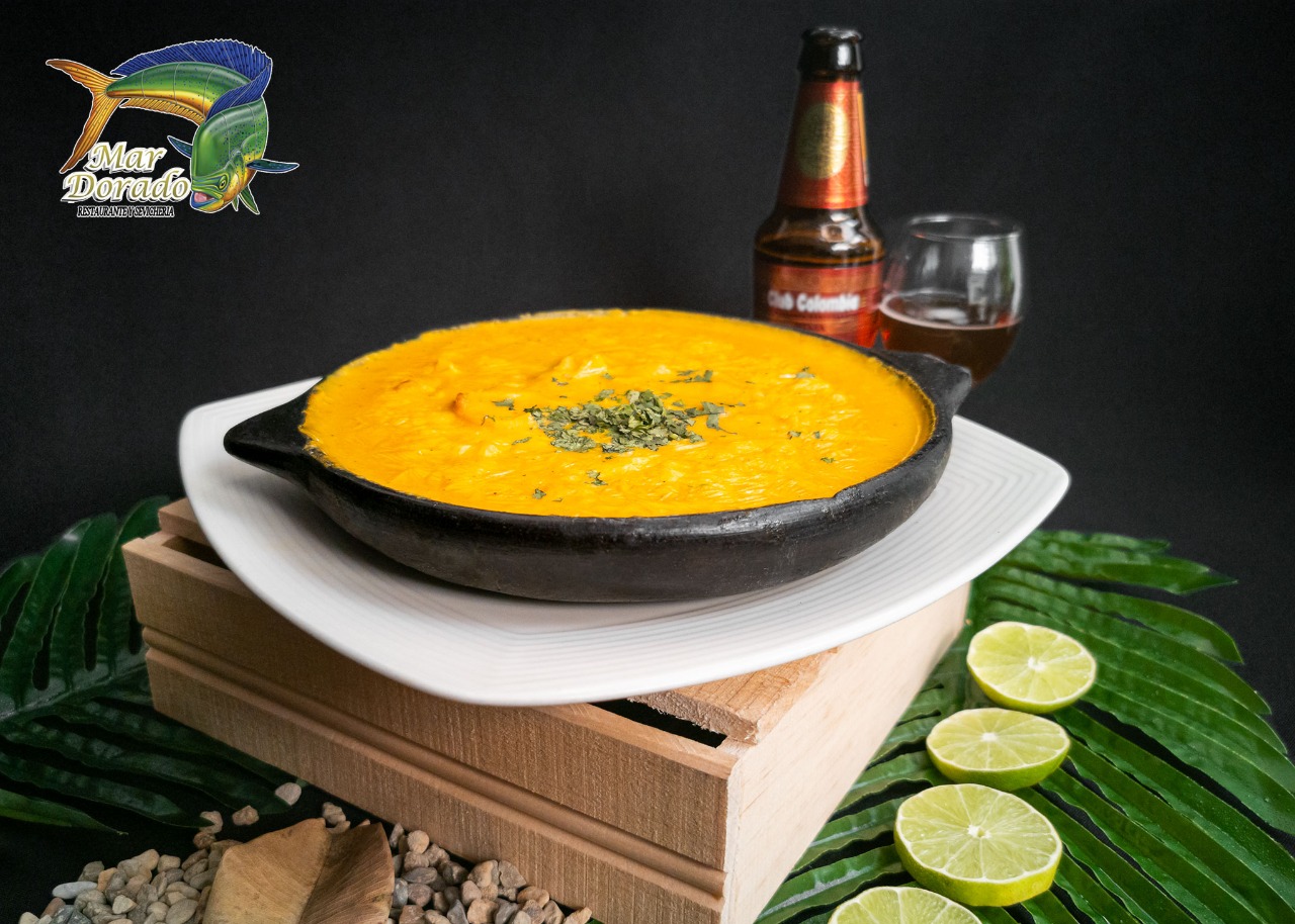 Sancocho marinero, 300 gr de mariscos, langostino, palmitos cangrejo y picante al gusto.