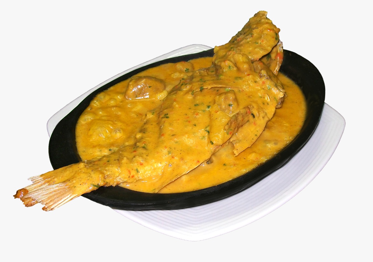 Pelada frita de 300 gr, más sancocho de pescado, acompañada de porción de arroz coco, tostadas de plátano y ensalada.