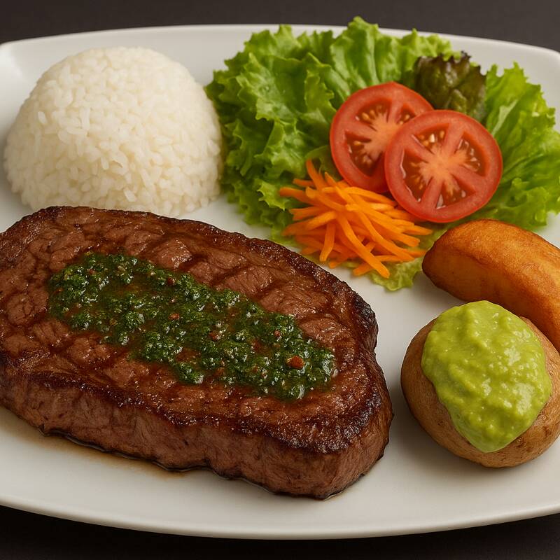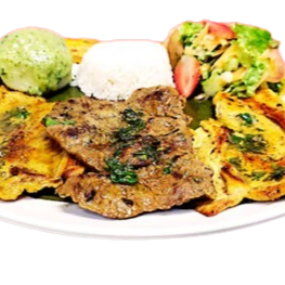 250 g Acompañada con papa con guacamole, arroz, maduro, ensalada de la casa.