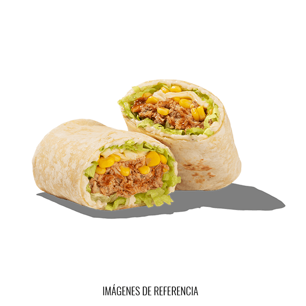 tortilla grande,pollo,carne desmechada,vegetales,salsa de la casa,mostaza,cheddar