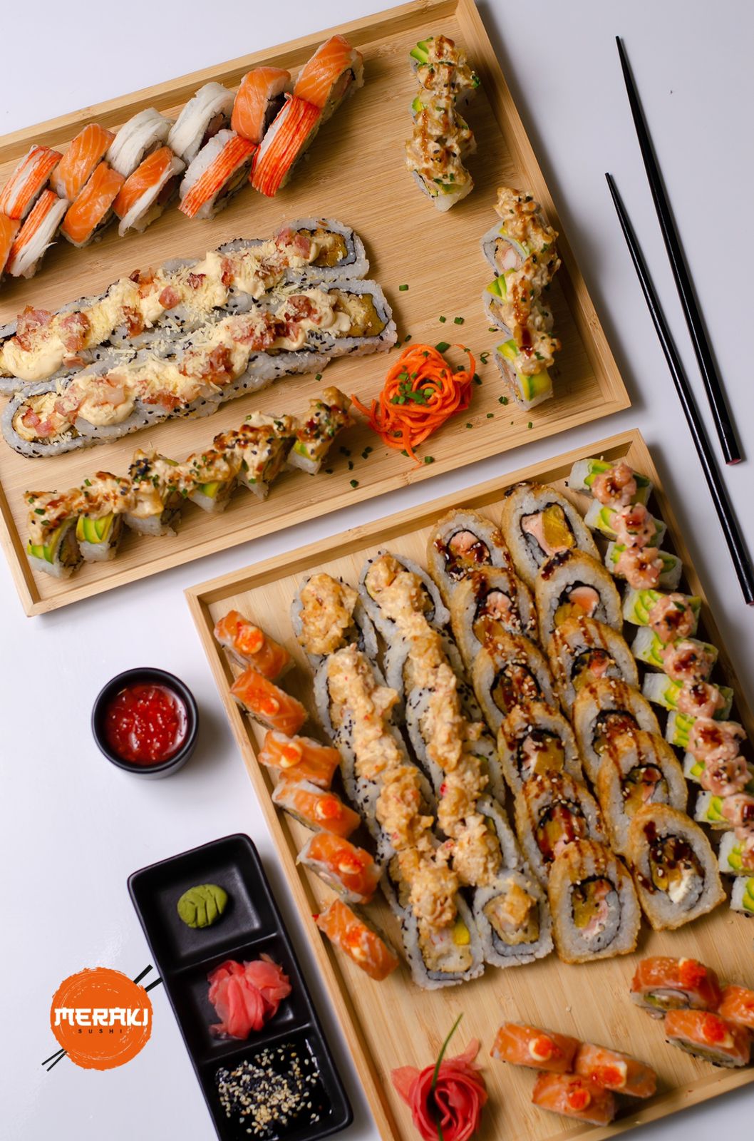 Combo X 36 Rolls Panko Roll X 12 (Roll apanado relleno de salmón, madurito y queso crema, con tope de salsa teriyaki), Uramaki X 12 (Rollo de camarón, maduro y queso crema, con tope de aguacate y explosiva salsa dinamita) y Eby Roll X 12 (Roll de langostino en panko, queso crema, aguacate, con tope de ajonjolí)