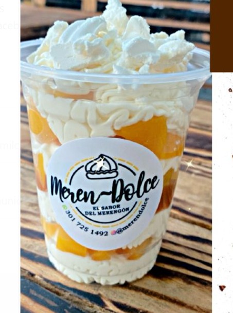 Duraznos, guanabana, crema meren dolce, arequipe y suspiros.