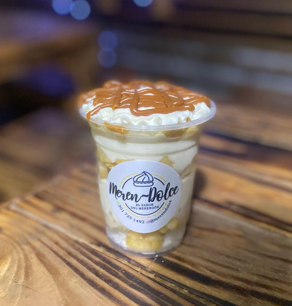 Guanábana, banano, cremoso arequipe, suspiros crocantes, crema meren dolce.