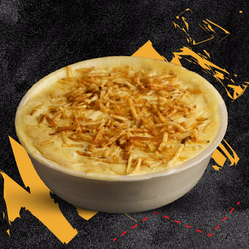 Pollo Desmechado, Maicito, Queso Gratinado, Ripio de papa, Salsa Casera