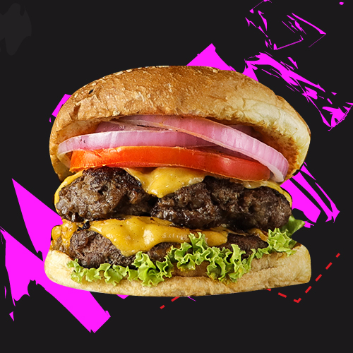 Doble Carne Angus 150gr, bacon, queso cheddar, pan brioche, cebolla morda, tomate y lechuga crespa.