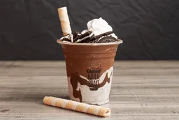 Malteada de Oreo, Oreo, crema de avellanas, barquillo, salsa de chocolate, chantillí.
