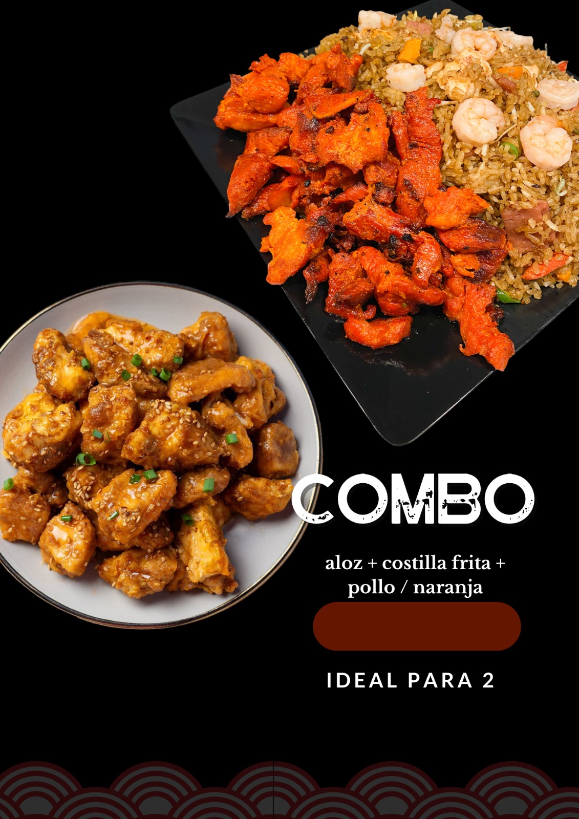 Aloz Chino + Pollo a la Naranja + Costilla Frita (Ideal para 2)