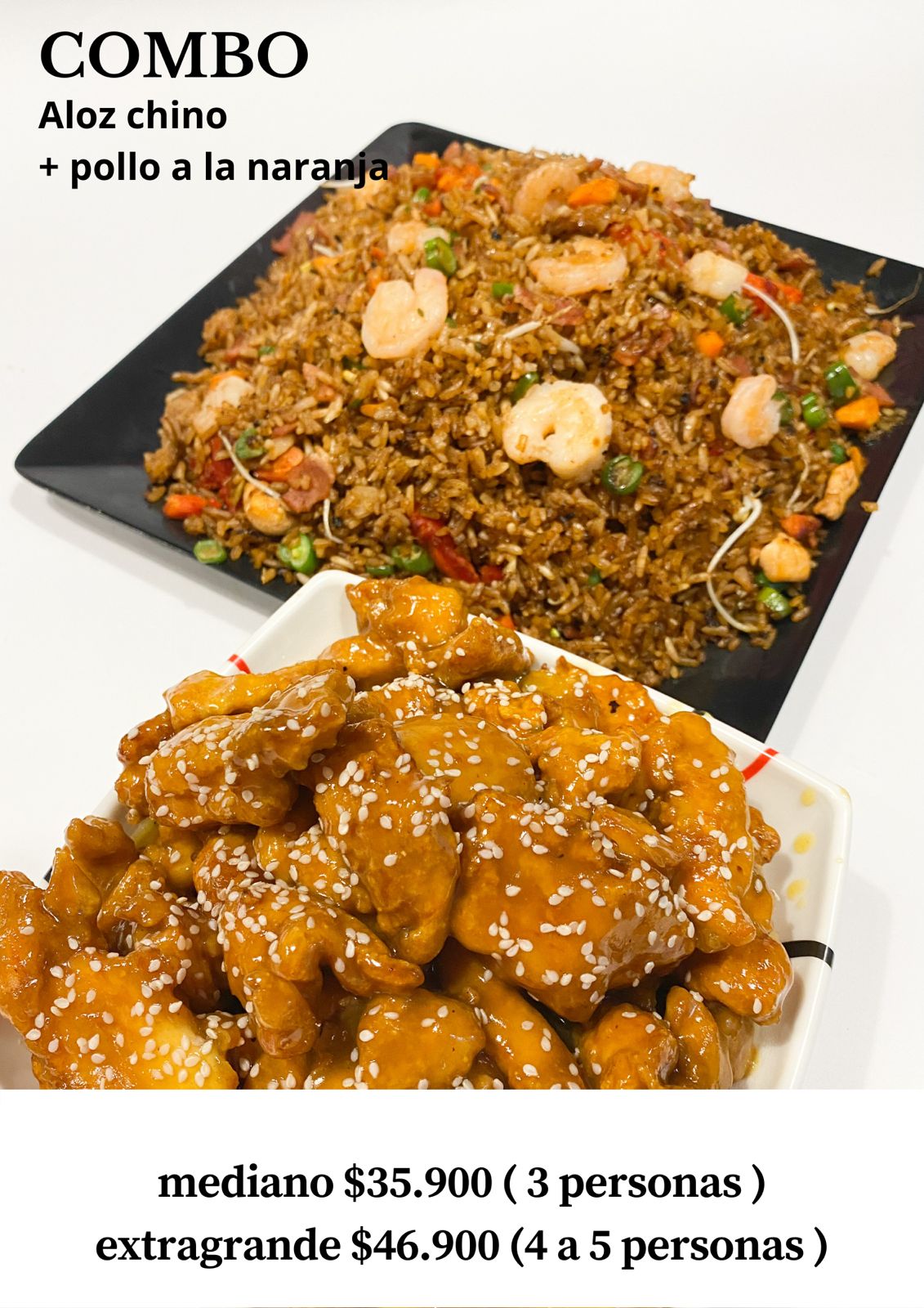 Combo para Tres Aloz Chino + Pollo a la Naranja