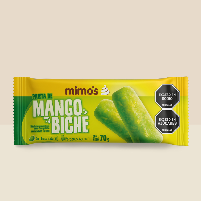 Refrescante Helado de agua con fruta y trozos de Mango biche
