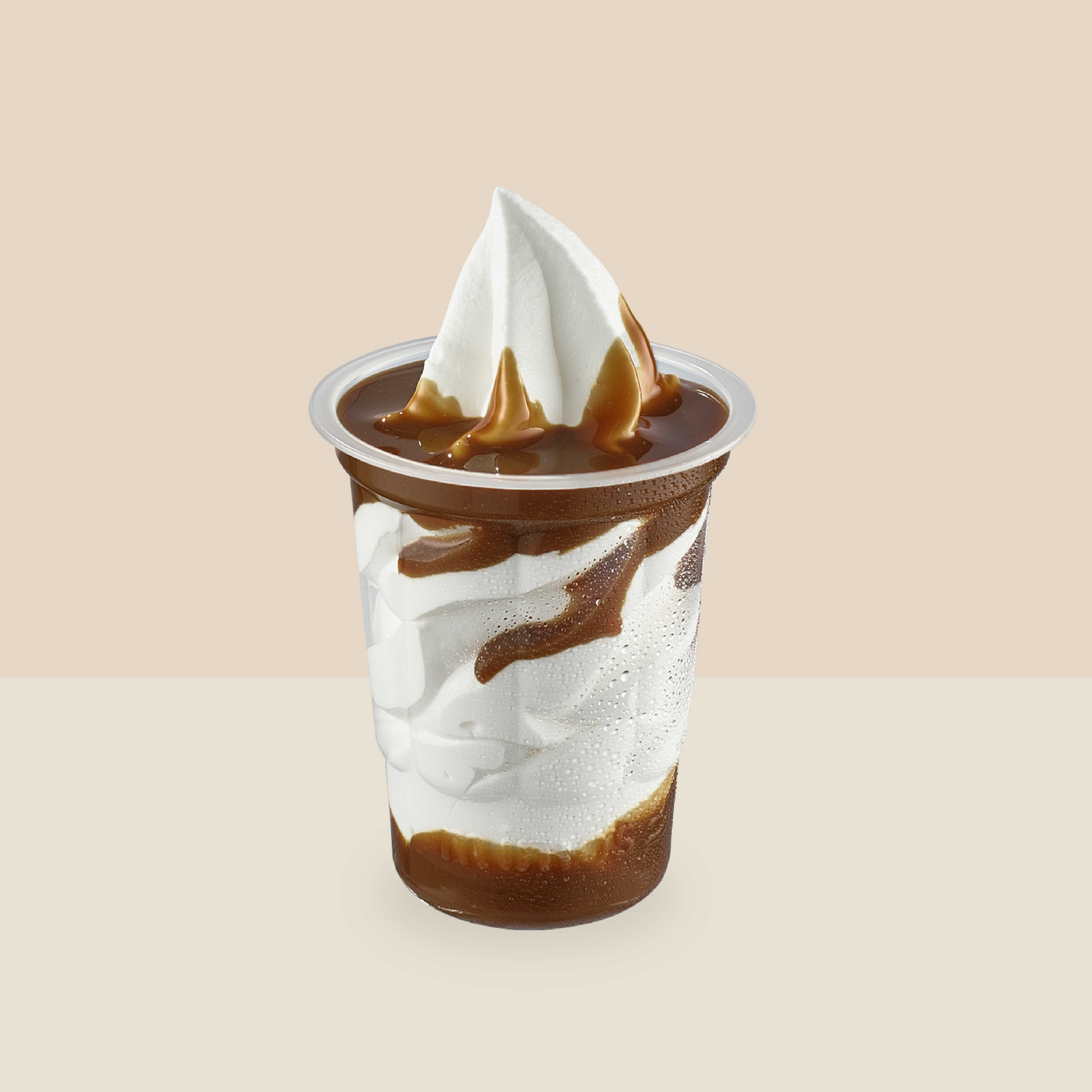 Perfecta combinacion de helado suave de vainilla y salsa de Caramelo