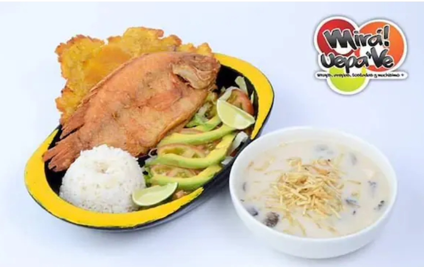 Tilapia frita 400 gr, ensalada verde de (lechuga batavia, zanahoria, tomate, aguacate ), arroz, patacón, sopa del día, bebida, postre del día.