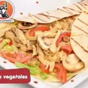 Pollo desmechado, Lechuga batavia en julianas, Cebolla cabezona, Tomate, Pimentón, Champiñón y nuestra deliciosa salsa de queso casera. OBSEQUIO bebida y postre