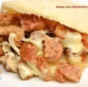 Arepa con Chorizo Santarrosano acompañada de Chorizo Santarrosano, maíz, maduro y queso.