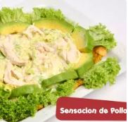 Pollo desmechado, Lechuga batavia en julianas, Mayonesa y Aguacate. OBSEQUIO bebida y postre