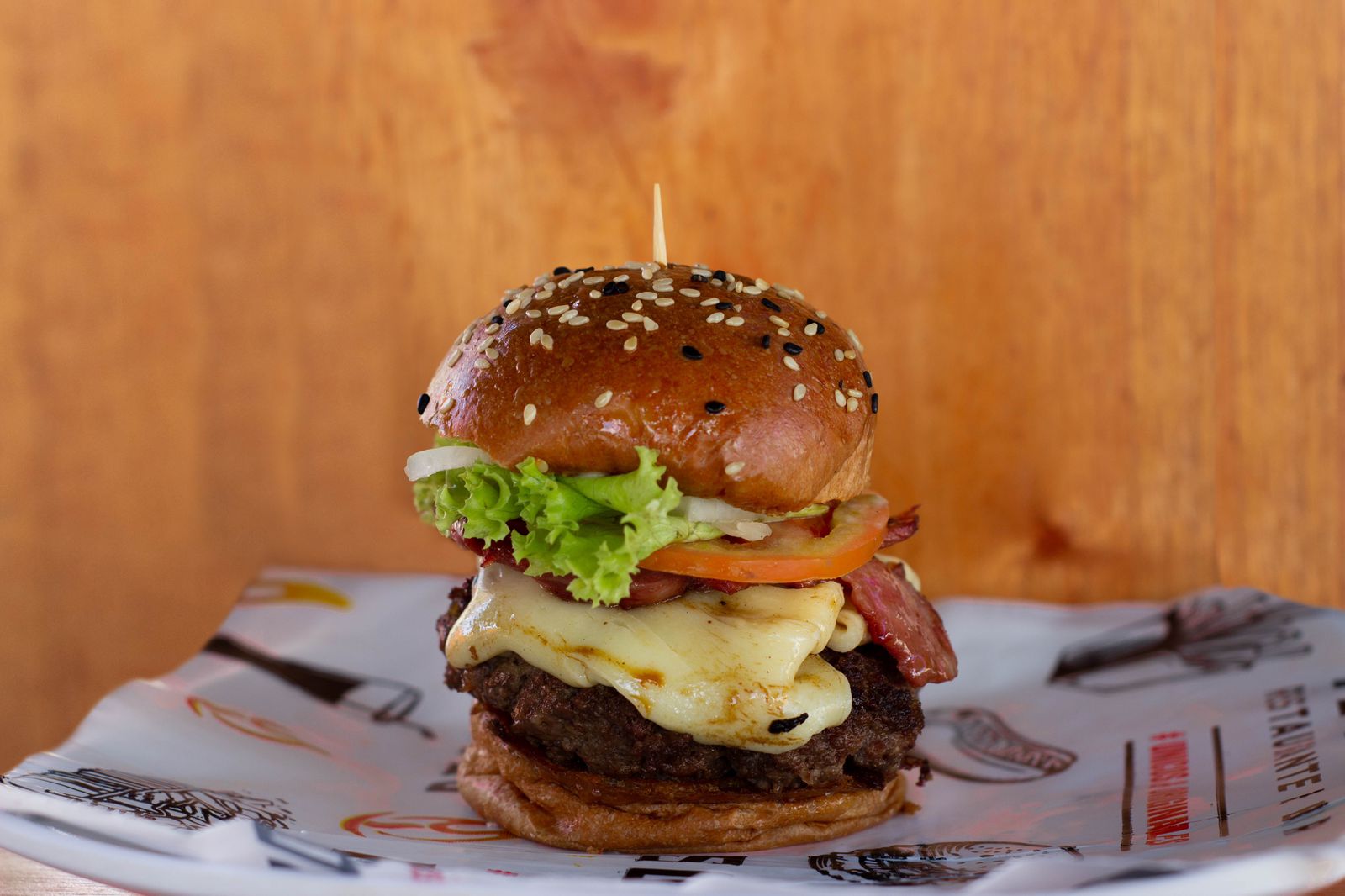 Hamburguesa Clásica contiene Carne artesanal tipo Angus 160 gr de carne de res , tocineta, queso mozzarella y vegetales (cebolla, lechuga y tomate), pan artesanal tipo brioche, acompañada de las salsas de la casa (ajo verde y miel mostaza).