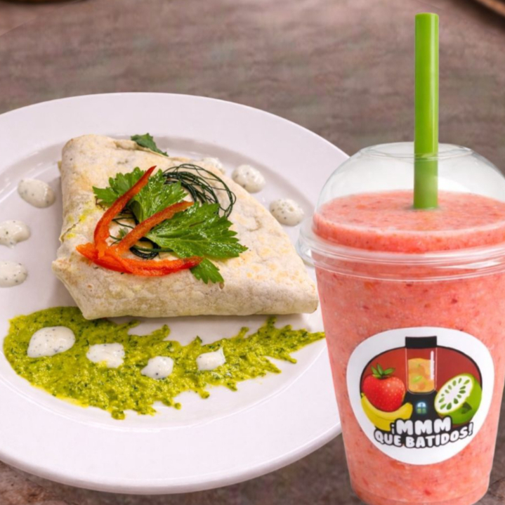 Wrap (pollo, cerdo o res) acompañado de un batido