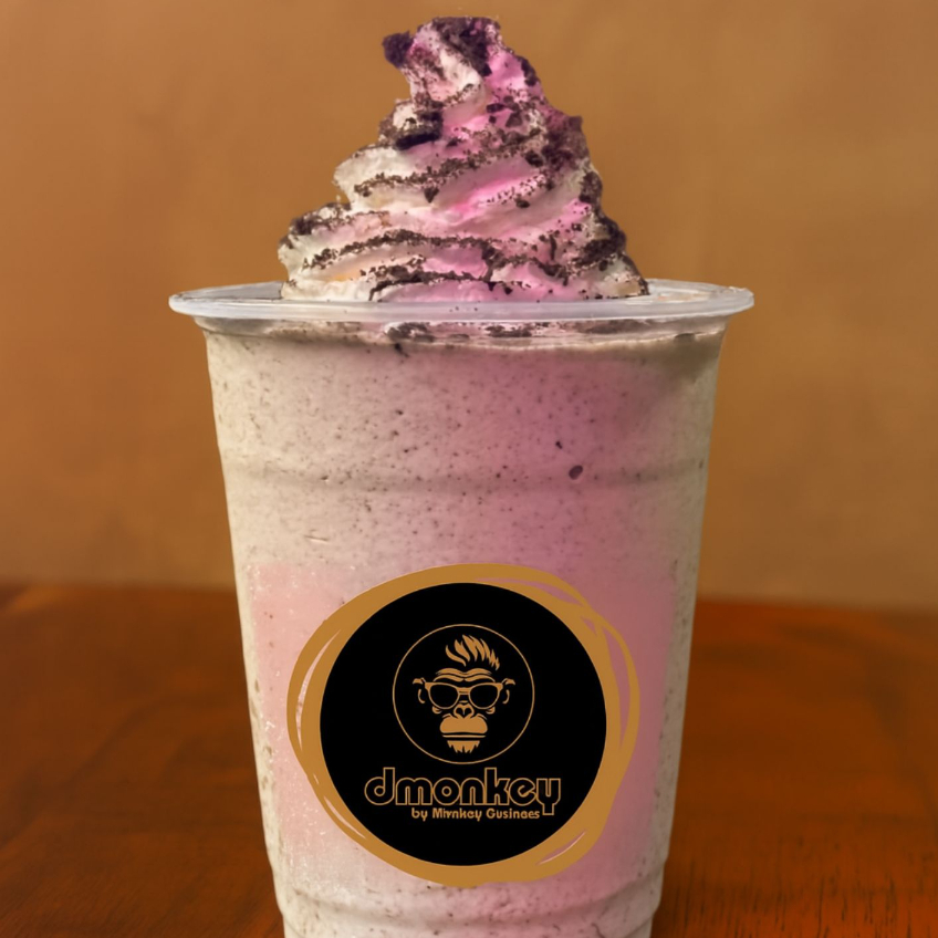 Malteada de brownie, migas de oreo, acompañado de porción de papas a la francesa.