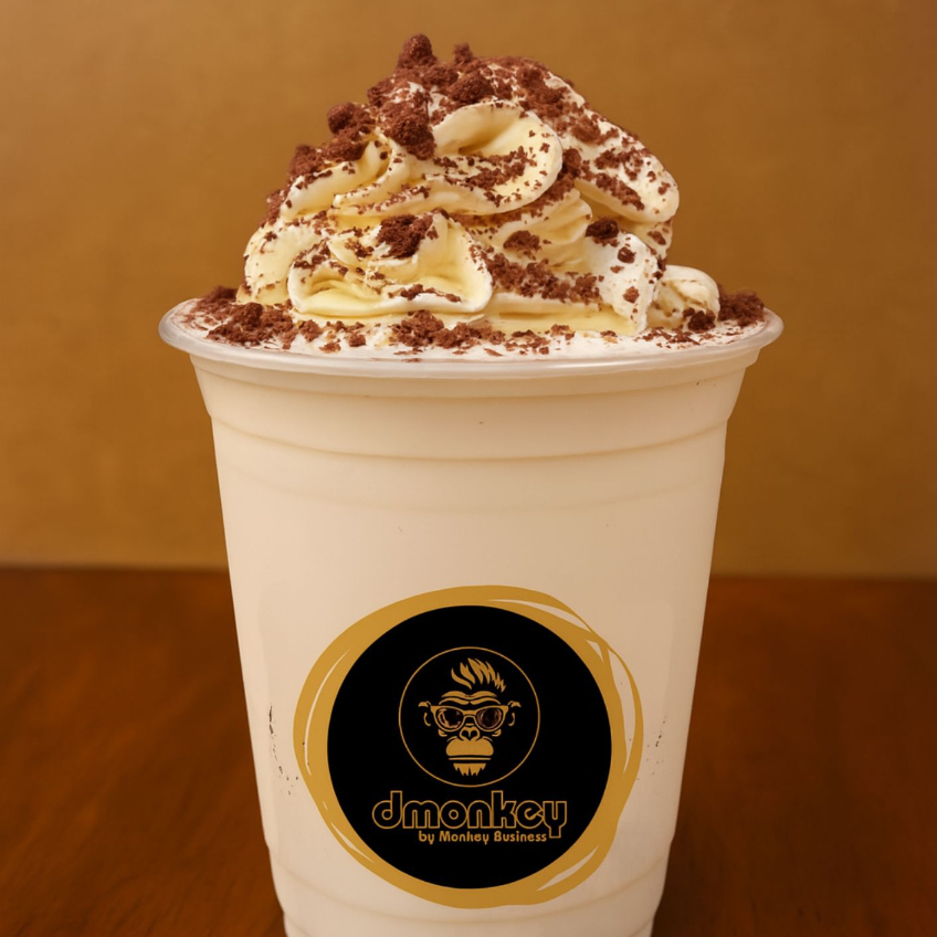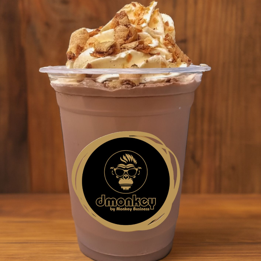 Malteada clásica de chocolate, crema chantilly y trozos de piazza chocolate.