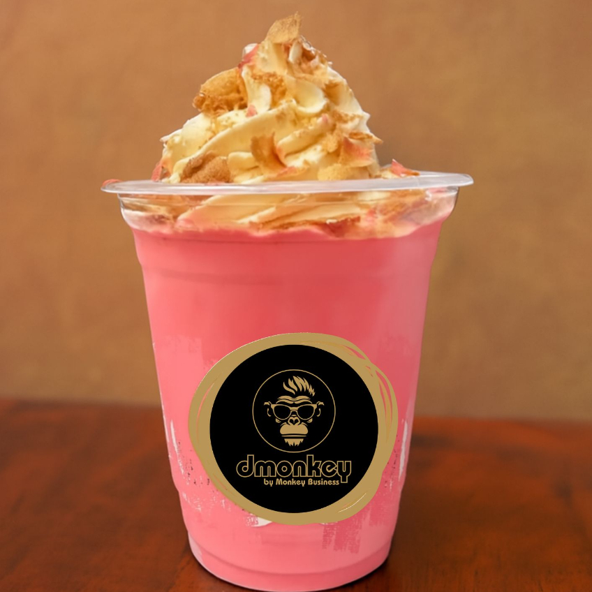 Malteada clásica de Fresa, crema chantilly y trozos de piazza fresa.