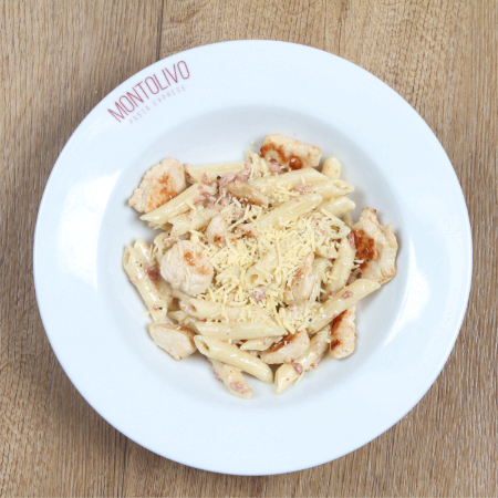 Doble porción de pasta (240gr.) con salsa alfredo, tocineta y pimienta