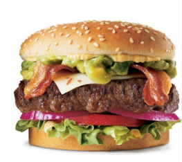 Pan de hamburguesa, carne de res, tomate, lechuga, tocineta, nachos, maíz dulce, guacamole, pico de gallo, queso mozzarella y salsa chipotle.