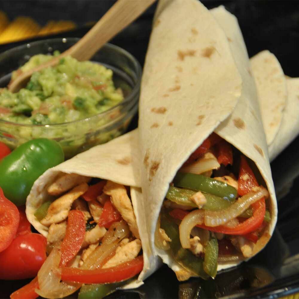 tortilla grande,carne,pollo,queso, lechuga, maiz tomate, salsa de ajo