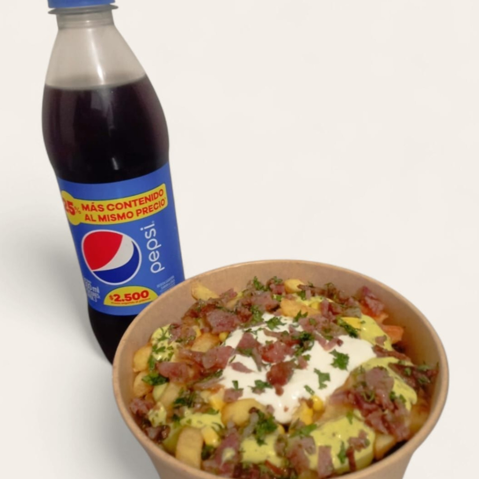 SALCHIPAPA PERSONAL ESPECIAL + GASEOSA 250ML