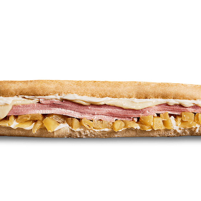 pan de 21 cm ,pollo desmechado,piña calada,lechuga,tomate,queso mozarella y salsa de ajo