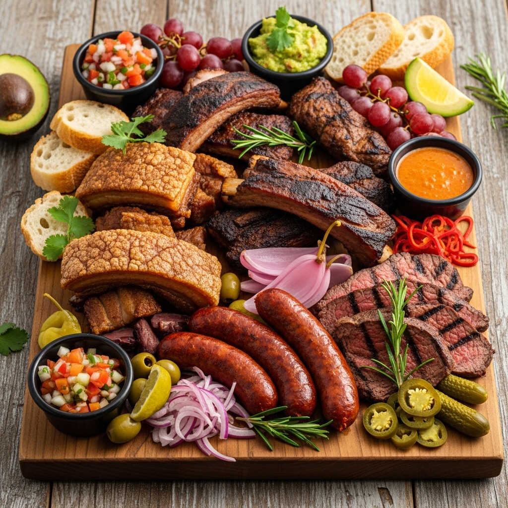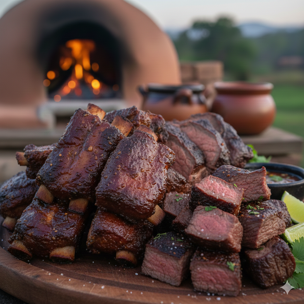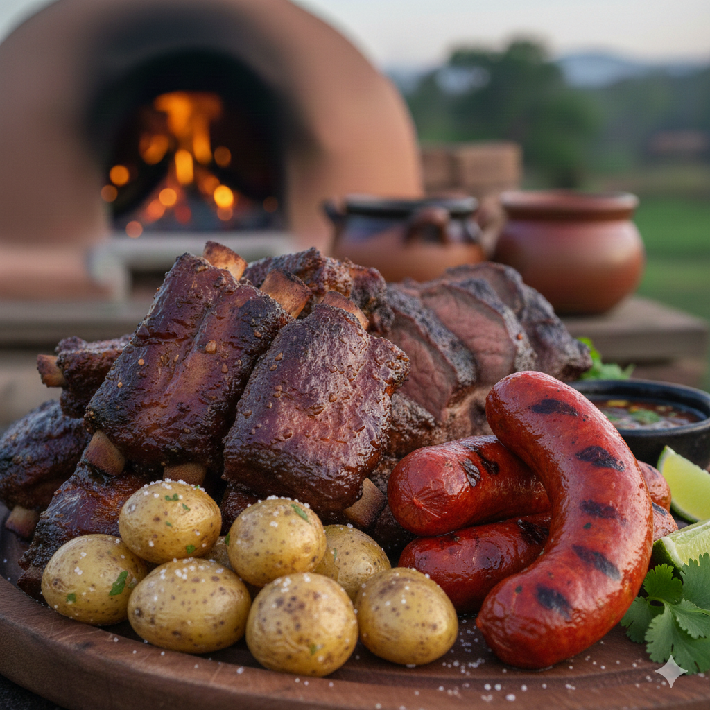 Acompañado de chicharrón, costilla, chorizo y carne de res al barril.