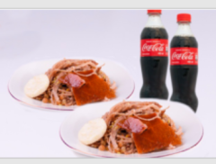 8 Canasta de plátano con 30 g de lechona y chicharrón, 2 bebidas 250 ml.