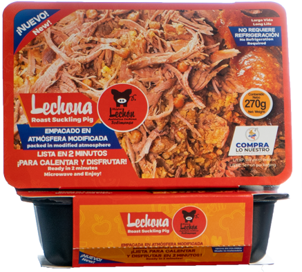 Lechona de 300 g de carne de cerdo, tocino, arveja, arroz, tomillo, laurel, orégano, cebolla y arepa.