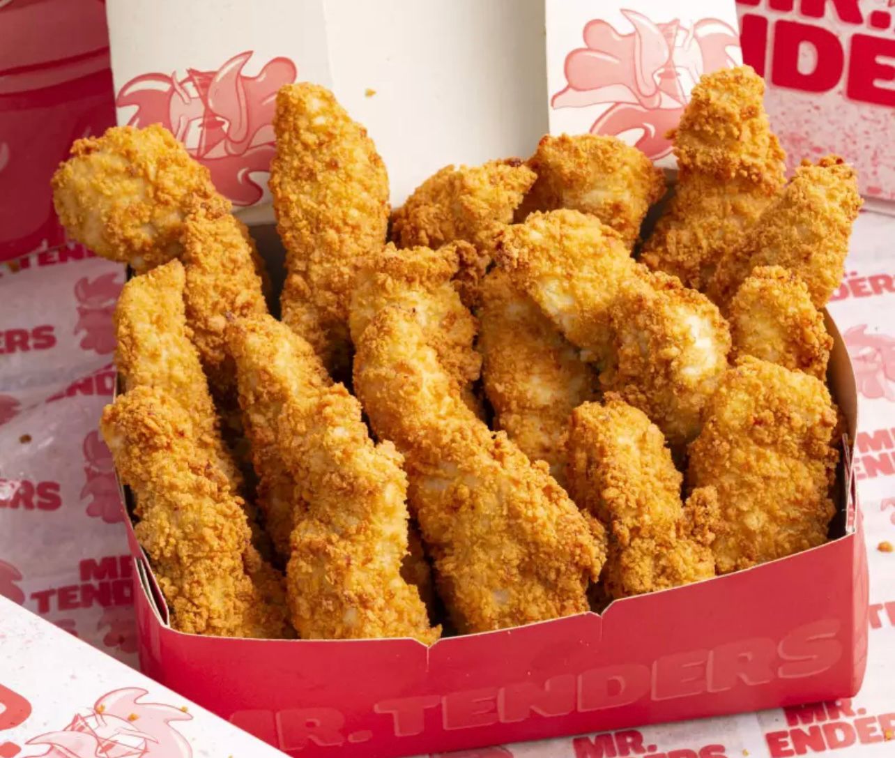Deliciosos tenders de pollo gigantes 20 unidades, acompañados de salsa de la casa.