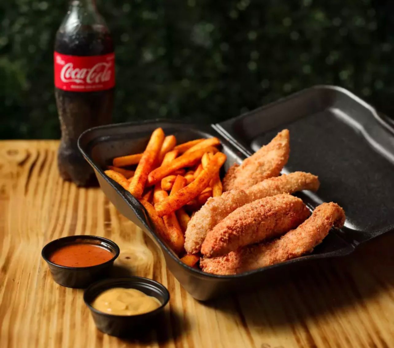 Delicioso 3 tenders de pollo crujientes, papas a la francesa y Coca Cola 250 ml.