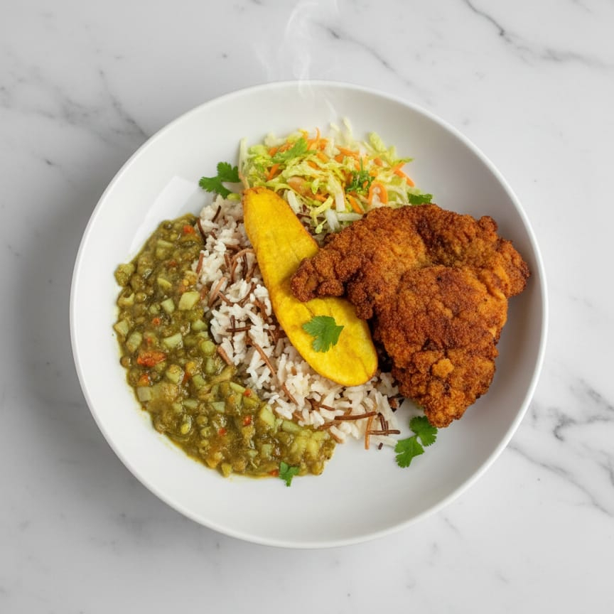 Chuleta Valluna de pollo acompañado por sopa del día, arroz, ensalada y principio