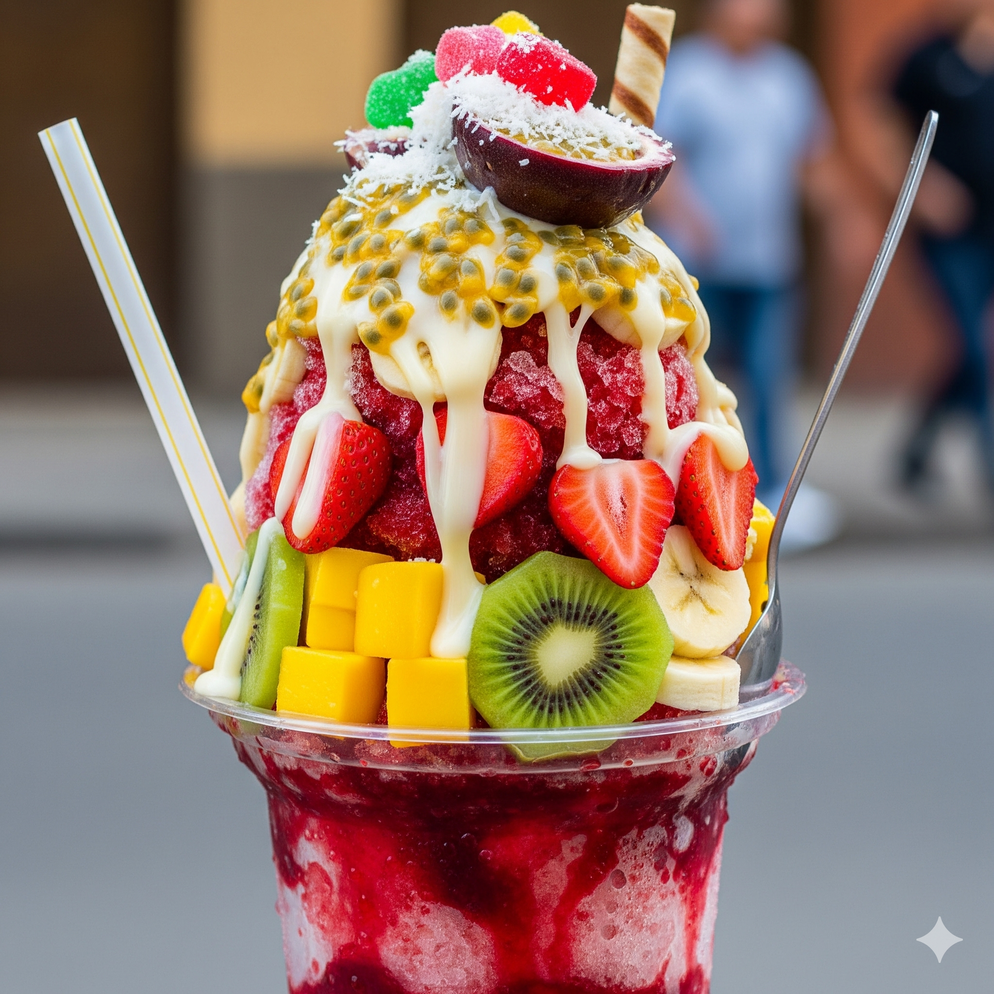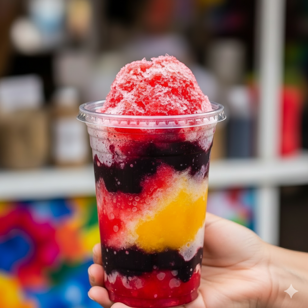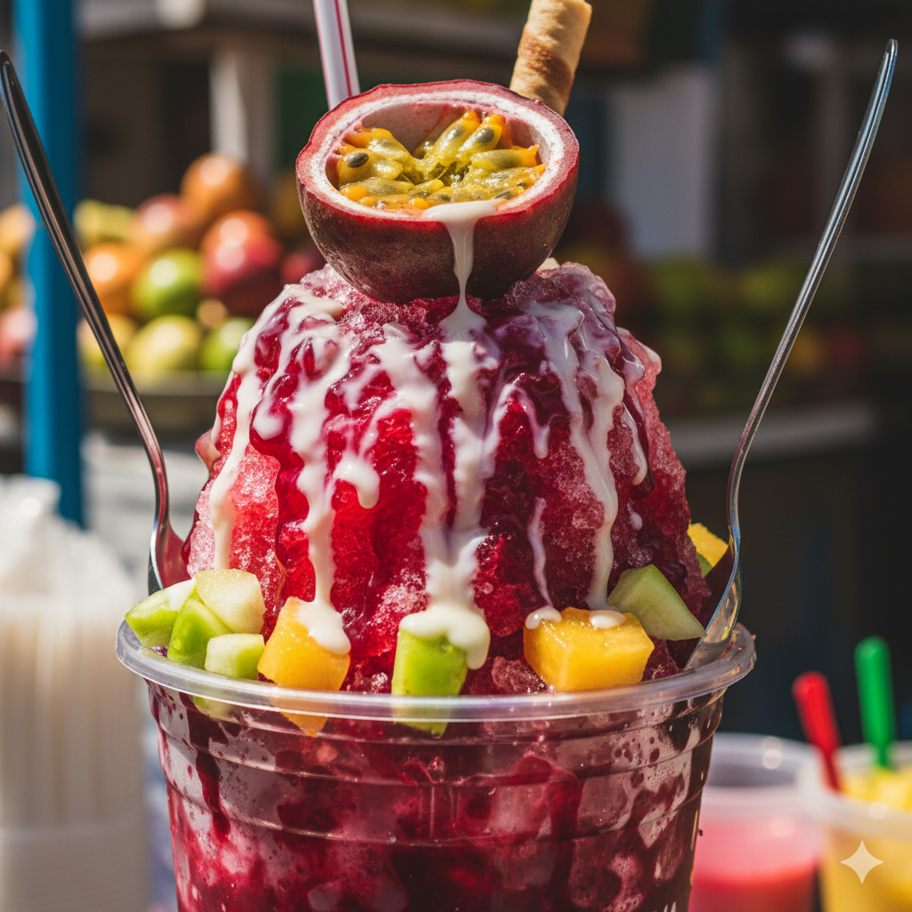 Delicioso raspado con salsa dulce de la casa.