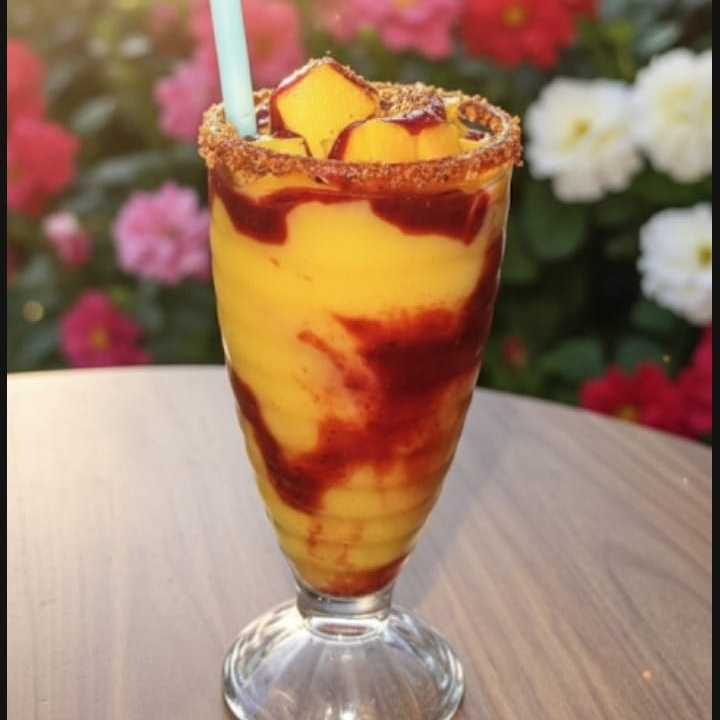 Chamoyada, granizado, trozos de mango.