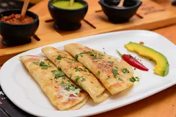 Orden de 3 unidades, rellenas de queso, servido con lechuga, crema, acompañados de una guarnición de aguacate.