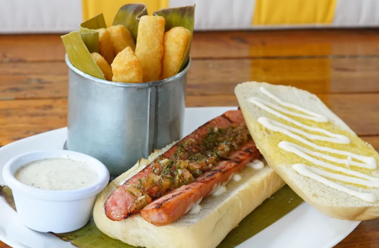Chorizo a la parrilla, pan, chimichurri y acompañante a elección.