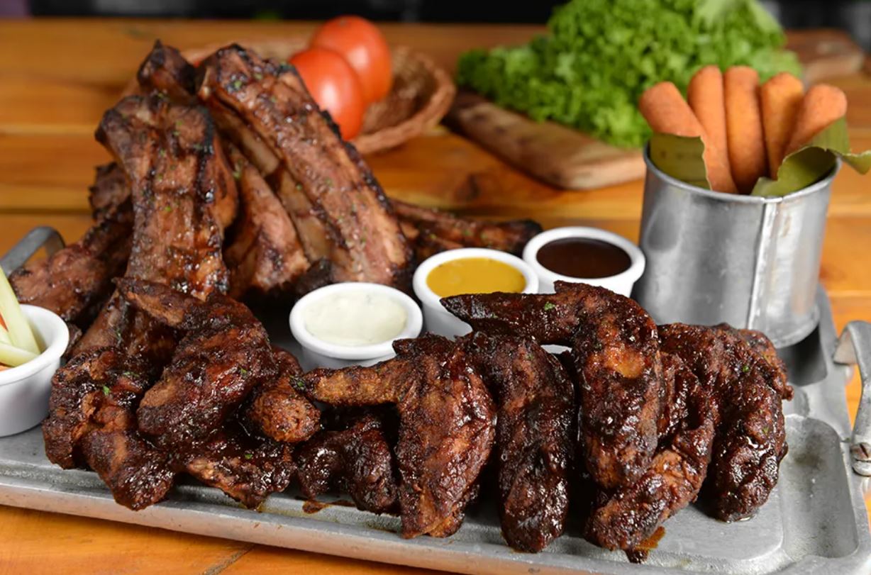 Alitas x 12 uds, full rack de costillas con salsa a elección y papas rústicas (2 a 3 personas).