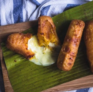 Aborrajados vallunos de cantidad a elección, plátano maduro con relleno de queso.