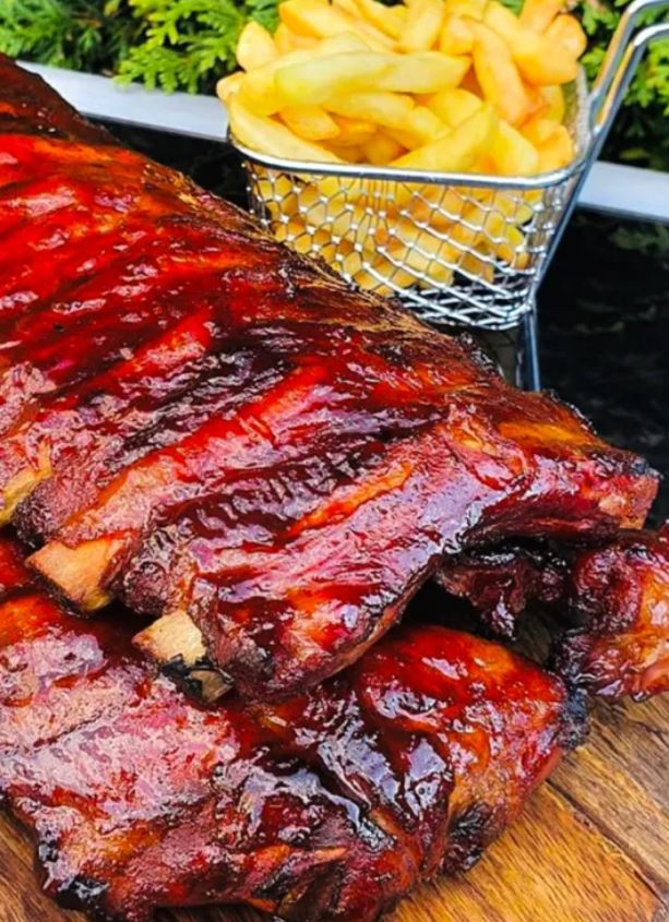 Costilla artesanal con salsa BBQ de la casa, con acompañante a eleccion
