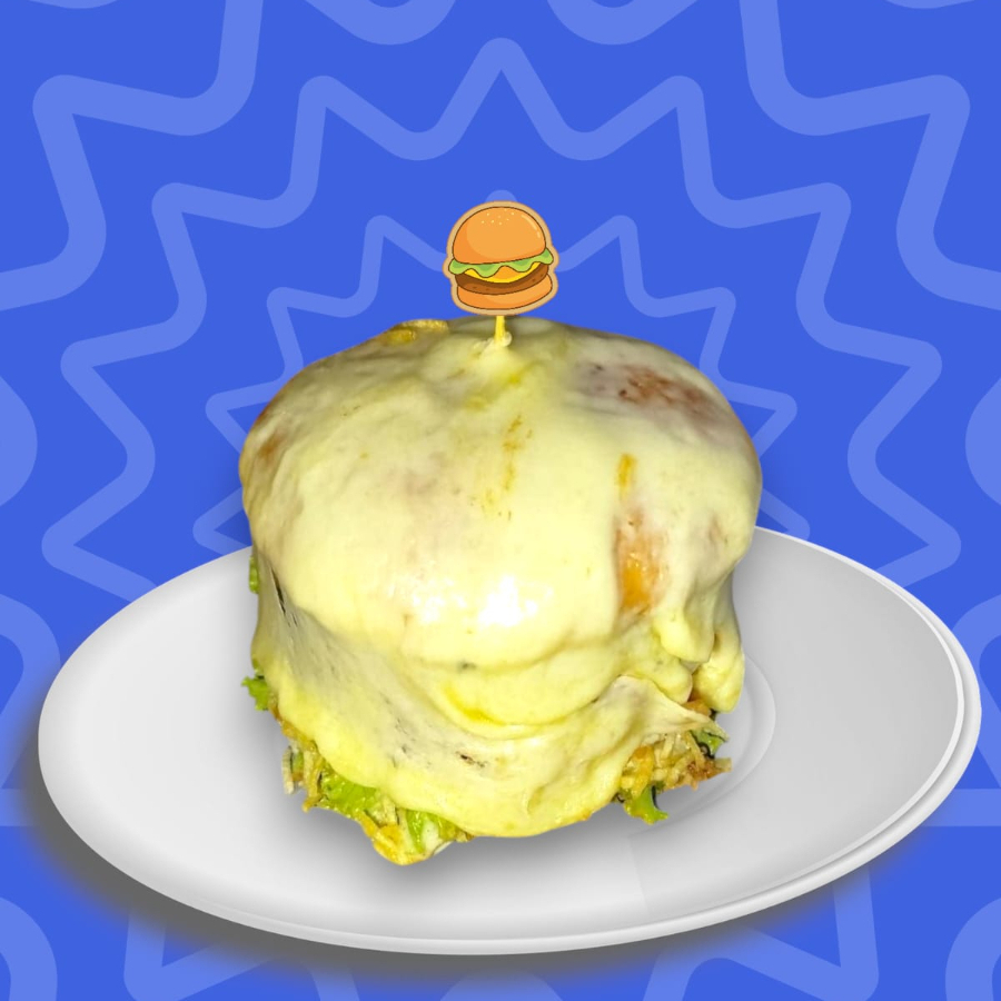 pan bimbo, jamon, queso cheddar,tocineta, carne de hamburguesa, queso, tomate, cebolla caramelizada, lechuga, ripio, salsas y huevo