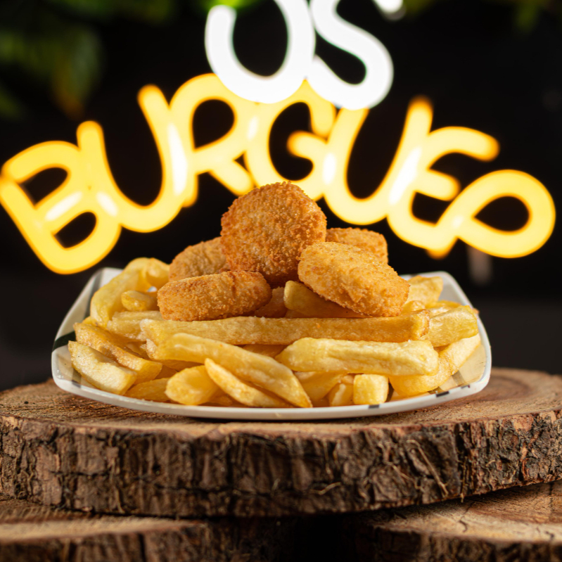 Nuggets de pollo 5 unidades, papas a la francesa, salsas.